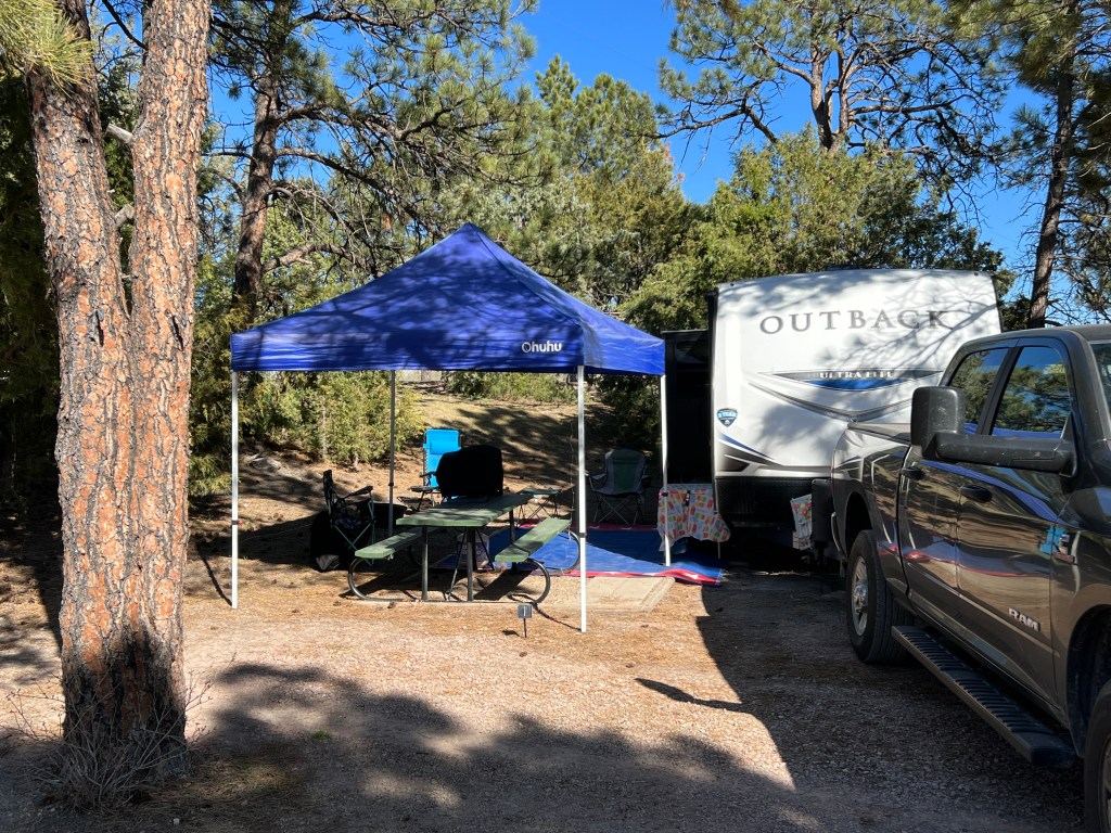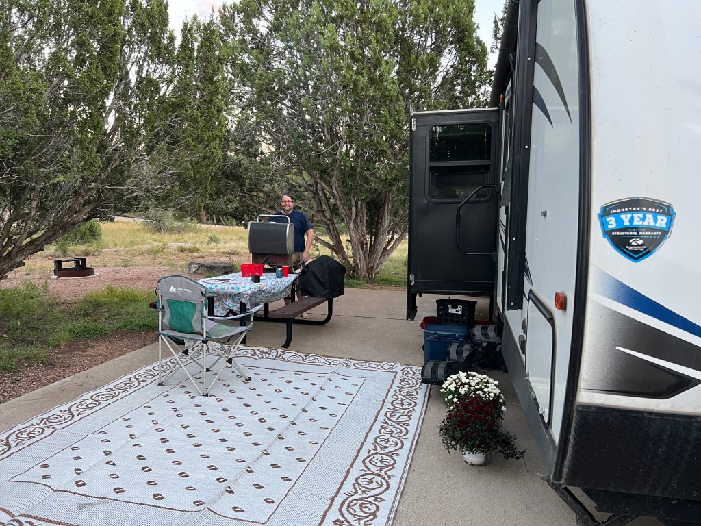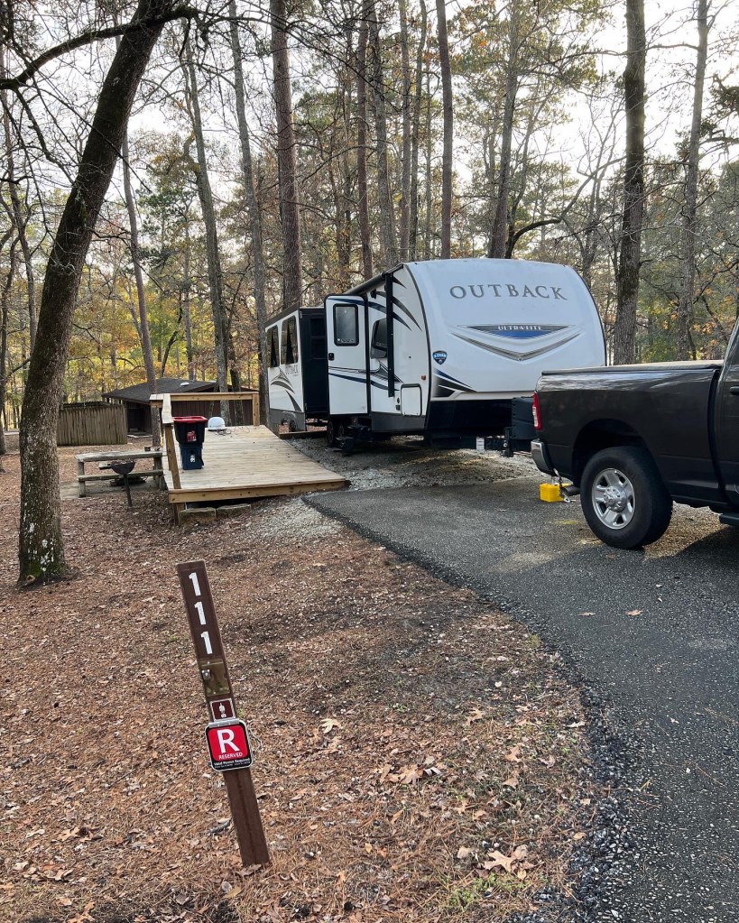 After leaving Colorado we made our way to Oklahoma for a few nights in the woods with no responsibilities at a State Park we’ve not been to before. We had reservations at Boiling Springs State Park and really enjoyed our time there. We had one “activity” day as we call them – basically a day to do whatever we want in a location that isn’t spent traveling to our next location. We chose to not even unhook the RV while we were there and took a nice walk to their office/gift shop to obtain maps and enjoy the park more. It is a really pretty park and we enjoyed our time there. The spots in the area that is not full hook up were much nicer and roomier than the area that is full hook up so I was glad we chose the roomier area to stay in when we booked our spot there.