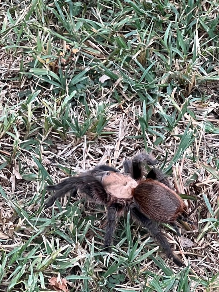 Also while in Oklahoma, Tessa saw her first live tarantula in the yard of our camping spot in Ada. We had come home from errands and as we were unloading the car there was a giant tarantula in the grass. Luckily it went on its way and it was safe to bring the pups out for a break – but I can tell you this I was sure to keep my eyes peeled for a return of that tarantula while we were there. We left Oklahoma sad to leave family but very excited for our next adventure.