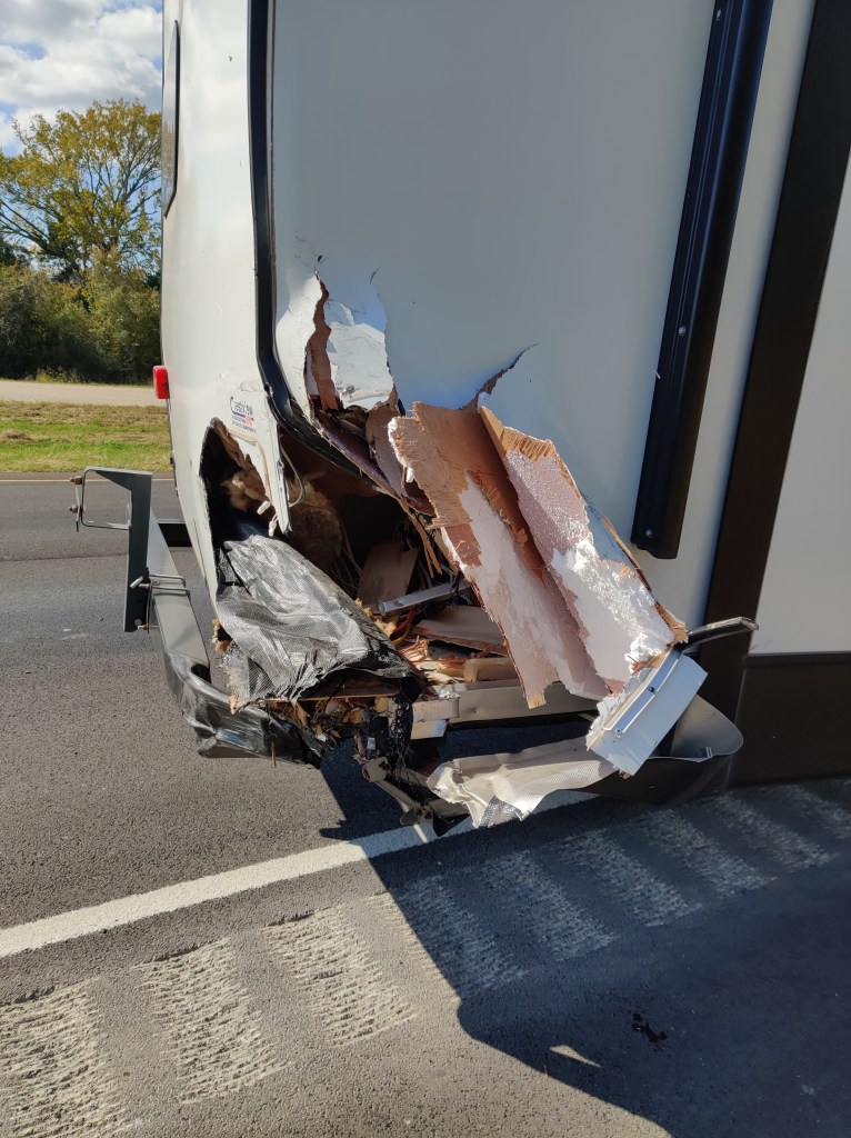 We hauled the rental up to Oklahoma to stay at mom and pop’s house for Christmas and were prepared to make the best of not having our own home with us. It was a different layout and definitely did not have some of the nicer features our own has but it was a way to be with family and camp until we could get ours back. While there Michael had an appointment and as he was driving in to a parking lot hit a bump and the hitch that the rental place had needed to lend us – ours sat too low – fell off the truck. Someone saw it happen behind him brought it to him and asked if it had fallen off his truck. They couldn’t figure it out as the pin was still on the truck. Turns out the RV rental person didn’t ever attach the hitch fully to the truck. We drove 390 miles from the house to Oklahoma basically with the weight of the RV keeping it in place. We considered ourselves very lucky that nothing worse happened that caused it to detach along the way.